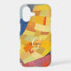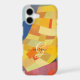 Trendy vintage abstract art and gold monogram and black script name make this cell phone case a standout.