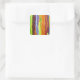 Colourful and unique abstract art design of thick rainbow coloured paint stripes dripping down the artwork against a bright, neon yellow / lime coloured background. The bright, warm colours will certainly create a talking point in your environment.