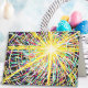 A Christian Easter card celebrating the resurrection of Jesus. A yellow and aqua glory starburst on black textured background, abstract art painting. On the inside of this card is the bible verse from John11:25-26 'I am the resurrection and the life. He who believes in me will still live, even if he dies. Whoever lives and believes in me will never die.' taken from the World English Bible (WEB) version. Artwork by artist Catherine Sweetman.