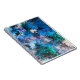 This bright spiral notebook displays the artwork 'Swirling waves' - a pouring paint piece in which the colors blend like swirling water.