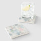 The coasters are gorgeous, a quality feel and heavy weight. They look like a precious archeological find. A rustic stone juxtaposed with a modern floral black and white print. I like the way the print goes slightly imperfect on the cut stone edges giving them a kind-of natural beauty.