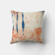 Contemporary abstract modern art throw pillow in navy blue, orange and beige cream white.