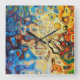 Abstract Art Yellow Orange Blue Swirls Square Wall Clock