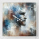 A profile view of a man's face with goatee emerges from a background of abstract shapes and brushstrokes in various tones
