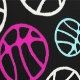 Abstract Basketball Ball Pattern Kids Wallpaper. Hand drawn abstract basketball balls in different colours on a black background. Great for a kid's room or nursery room.