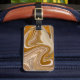I was happy with the acrylic tag but it came with a thin leather strap to attach the tag to luggage (like a cat collar). I replaced the strap with a metal ring off of a key ring as the leather strap would come undone or break easily as luggage is sometimes handled without much care by airlines. Printing is great. Colours and positioning of the design I put on the tag were perfect. Very pleased.