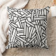 A bold black and white abstract pattern throw pillow featuring irregular, overlapping lines that intersect to form a fragmented mosaic of angular shapes. The thick black lines and crisp white spaces create a striking, high-contrast design that feels both chaotic and structured.