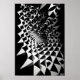 Geometric swirls on the black background, in the style of monochromatic realism, fragmented architecture, dramatic use of shadows, zigzags, hyperbolic expression, monochromatic white figures.