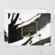 Inky, black paint brushstrokes create an abstract backdrop on this designer postcard template. Your name or business name is displayed in a faux gold box on the front for a modern esthetic. A fun, eye-catching postcard perfect for sending thank you's to customers, for personal greetings, or use for announcements. Art and design © 1201AM Design Studio | www.1201am.com