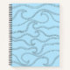 Abstract black line art drawing of waves of the sea on a light blue background. Choose from sketchbook, bullet journal, checklist, graph paper, recipe book, or lines in various widths and colours. Also choose a spine colour to further customise your notebook look.