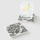 The coasters are gorgeous, a quality feel and heavy weight. They look like a precious archeological find. A rustic stone juxtaposed with a modern floral black and white print. I like the way the print goes slightly imperfect on the cut stone edges giving them a kind-of natural beauty.