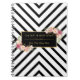 Abstract Black White Stripes and Floral Gold Frame Notebook