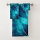 Abstract Bloom Aqua and Blue Fractal Design Bath Towel Set