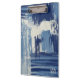 An abstract composition of freeform shapes and marks in a colour palette of blue and ivory. Personalise with an initial.