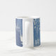An abstract composition of freeform shapes and marks in a colour palette of blue and ivory. Personalise with an initial.