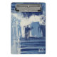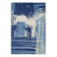 An abstract composition of freeform shapes and marks in a colour palette of blue and ivory. Personalise with an initial.