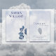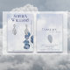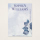 A dreamy abstract design featuring soft pastel clouds and watercolor botanical leaves in dark dusty blue, adding a touch of elegance. Customise with your contact information on the back. Please note: Cards do not come with pre-cut holes or stances; markings are for guidance only.