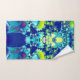 Abstract bath towel set featuring fractal art in vibrant colours: blue, cyan, green, and purple.