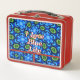 Abstract Blue Floral Pattern Metal Lunch Box