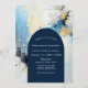 Abstract Blue & Gold Ink Splatter Artwork wedding Invitation