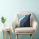 This elegant square pillow features a stunning abstract design, with a beautiful gradient of blue hues transitioning from light sky blue at the top left to a rich navy blue at the bottom right. The design is set against a soft beige fabric background, providing a calming and sophisticated aesthetic. The pillow is framed by a clean white border, adding a touch of refinement to any space. Perfect for adding a modern, artistic touch to your home décor.