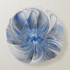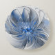 Abstract Blue Gray Watercolor Fractal Art Flower Round Cushion