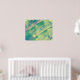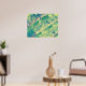 Painting of abstract diamond shapes of blue, green, and purple, on a yellow background is printed on Posters.