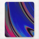 This abstract mouse pad features a swirly fractal design in dark blue, magenta, black, and grey.