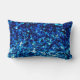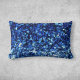 This lumbar pillow features an abstract paint stroke pattern in different shades of blue.