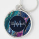 Abstract Blue Purple Gold Agate Monogram Key Ring