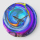 This abstract was based on shells and the sea, and has a swirling, asymmetric pattern of blues, aqua, purple and pink, yellow and orange. A subtle clock face has been added with complementary colours.