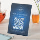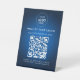 Abstract Blue Salon Business QR Code and Logo Pedestal Sign