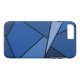 Protect your iPhone 8 Plus/7 Plus from drops with an impact resistant Case-Mate Tough case featuring a stylish geometric design of polygons in various shades of blue outlined in black. A light blue triangle slashes in from the upper left with an array of progressively darker blue quadrangles and other shapes spiralling around it from light to dark. Two dark blue shapes ground the bottom of the original design.