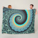 Abstract Blue Turquoise Orange Fractal Art Spiral Fleece Blanket