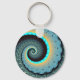 Abstract Blue Turquoise Orange Fractal Art Spiral Key Ring