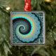 Abstract Blue Turquoise Orange Fractal Art Spiral Metal Ornament