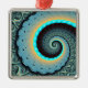 Abstract Blue Turquoise Orange Fractal Art Spiral Metal Ornament