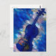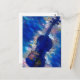 Artistic postcard for music lovers features blue violin abstract digital art created using AI rendering software.