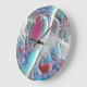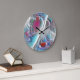 Abstract Blue & White Quilt - Pink & Cyan Fractal Large Clock
