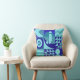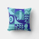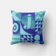 Abstract blues greens geometric shapes monogram cushion