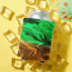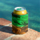 Abstract blurry spotted pattern in orange green can cooler