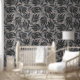 Pretty boho leaf pattern peel and stick wallpaper to elevate your home or apartment decor. Grey, and black hues.