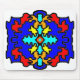 This striking design features a bold, abstract mandala pattern with a high-contrast colour palette of deep blue, vibrant red, and sunny yellow. The intricate, interlocking geometric shapes create a modern and energetic aesthetic, making it an eye-catching addition to any workspace. Perfect for those who love bold, contemporary art with a touch of classic symmetry.