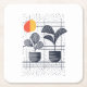 Elevate your home decor with this stylish coaster featuring an abstract botanical potted house plants design. The bold navy plant illustrations and pops of warm yellow and orange create a modern and artistic feel. Perfect for protecting surfaces while adding a contemporary touch to your coffee table, kitchen, or office. This versatile coaster combines functionality with striking minimalist aesthetics, making it a thoughtful gift or a trendy addition to your home.