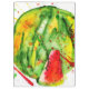 Abstract bright watercolor watermelon. The watercolor illustration was drawn and scanned. Watercolor made in 2019. The image will be both a good gift and a wonderful interior decor.