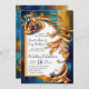 Painting, blues, yellows, gold, copper, flowers, bronze, abstract, repeat, baroque, brass-leaves creation for customised wedding invitations.