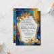 Abstract bronze and copper, arrangement of leaves and flowers in gold, copper, mixed blues, and yellows on an oil painting background for customised wedding invitations.