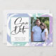 Abstract Brush Strokes Teal Lilac Save the Date Invitation