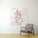 An abstract watercolor featuring patterned shapes and a botanical in a palette of maroon and soft calming colours.
