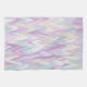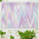 An abstract chevron design in a purple, turquoise, ivory and white palette.